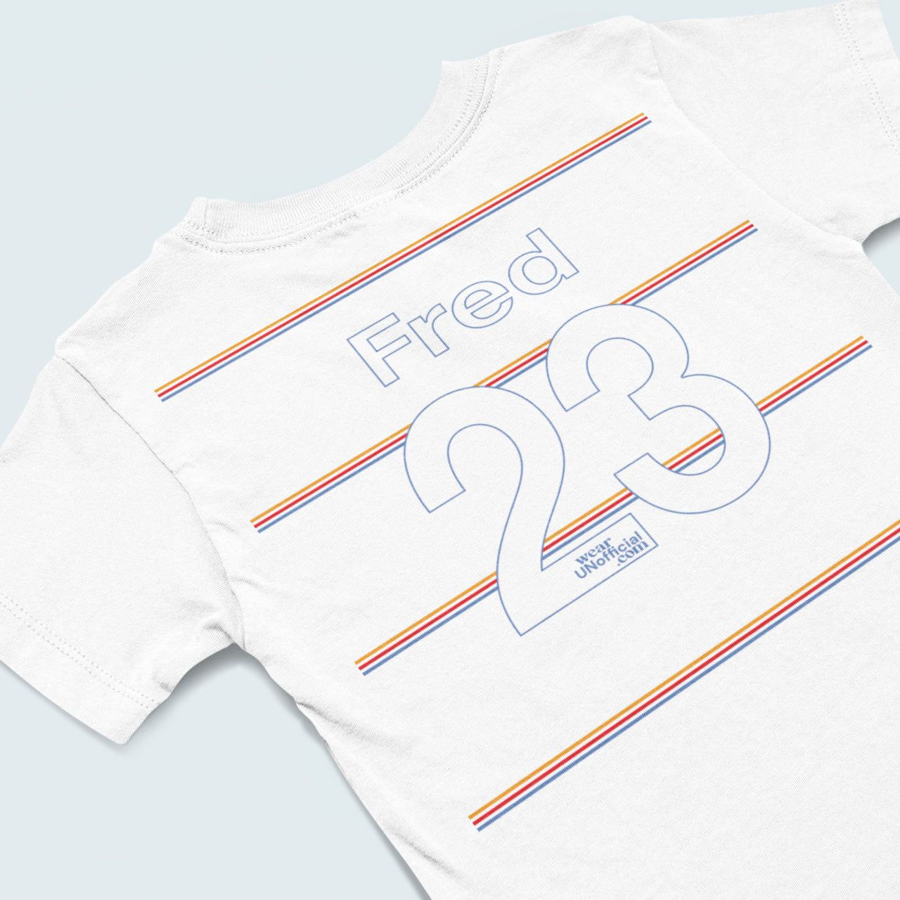 Show your love for Fred Again. Inspired by the football shirt worn by Tony Friend on stage with Fred Again on his epic Glastonbury set 2023. The iconic kids' t-shirt, perfect for your little trendsetters. Eco-friendly and manufactured to high quality standards.